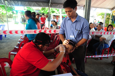 Các bệnh nhân được khám sàng lọc các bệnh về tai.